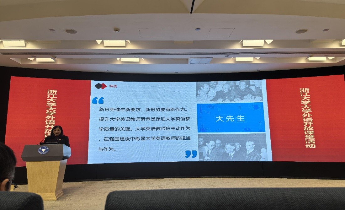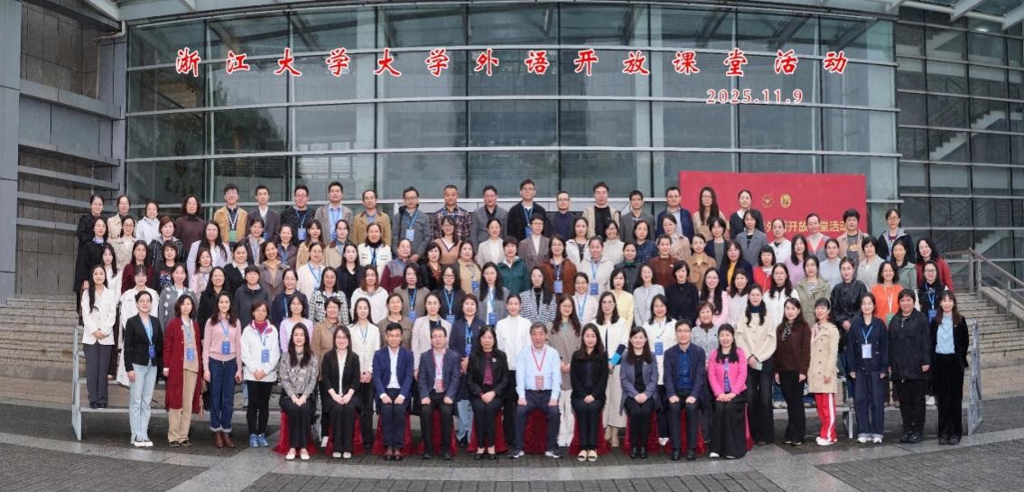 为深入推动大学外语教学改革,提升教师教学素养与育人能力,11月9日至11日,外国语学院党委书记王国华、大学外语教学部主任韩丽伟赴浙江大学参加了由浙江大学与外语教学与研究出版社联合举办的“大学外语开放课堂”活动。本次活动吸引了来自全国70多所高校的百余位教师参与,共同探讨智慧教学与创新育人路径,扎实推进“三进”工作与“四新”建设。