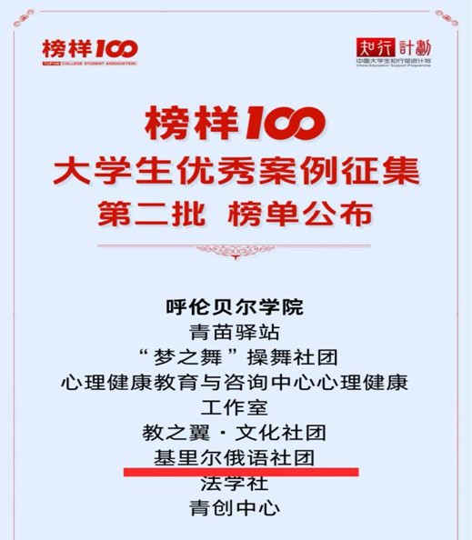 近日,由中国大学生知行促进计划与青年影响力创新中心联合发起的2025年度“榜样100”全国优秀大学生社团及团队征集活动榜单正式揭晓。外国语学院基里尔俄语社团凭借扎实的活动开展、鲜明的专业特色、深厚的育人成效以及在跨文化交流领域的突出贡献,从全国数千个高校社团中脱颖而出,成功荣登榜单,成为全国范围内获此殊荣的优秀大学生社团之一。这一荣誉不仅是对社团多年来发展成果的高度肯定,更是对社团全体成员初心坚守与不懈奋斗的最佳褒奖。